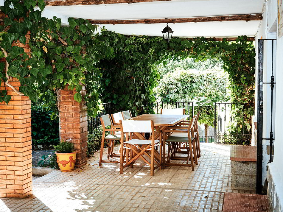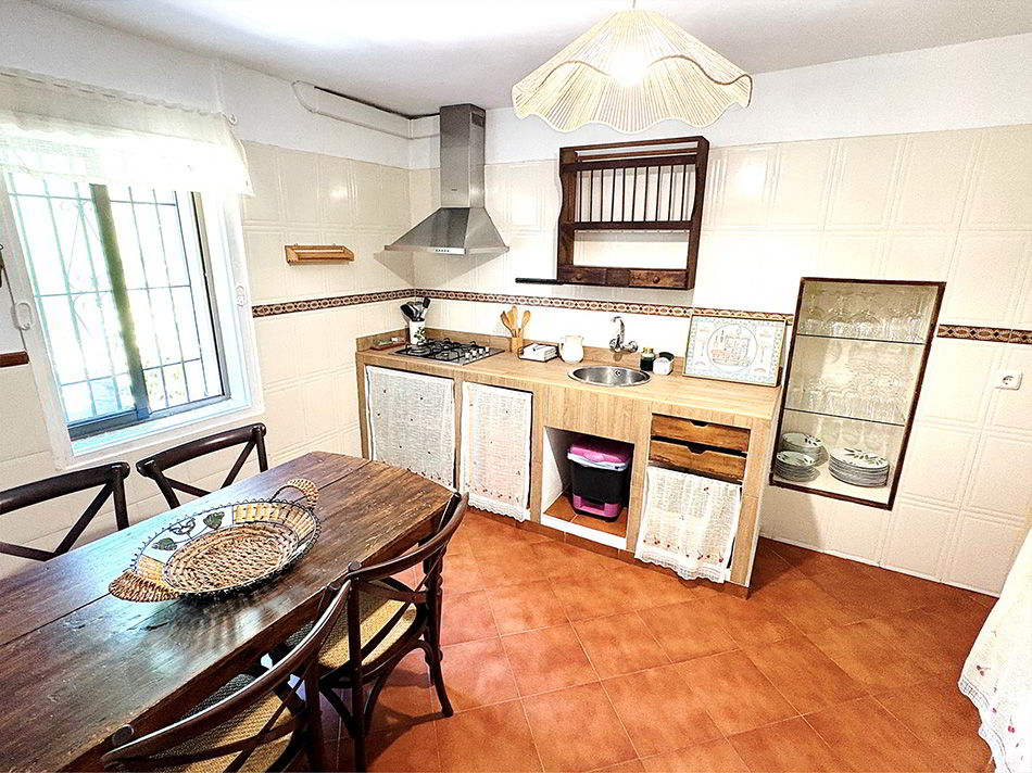 La casa tiene un porche con una gran mesa y una amplia zona de patio con barbacoa privada. Al estar alojado en la Finca podrá disfrutar de una preciosa y refrescante piscina, zona de campo y zona de aparcamiento. La piscina, zona de aparcamiento y el campo es una zona común que se comparte con las otras viviendas.